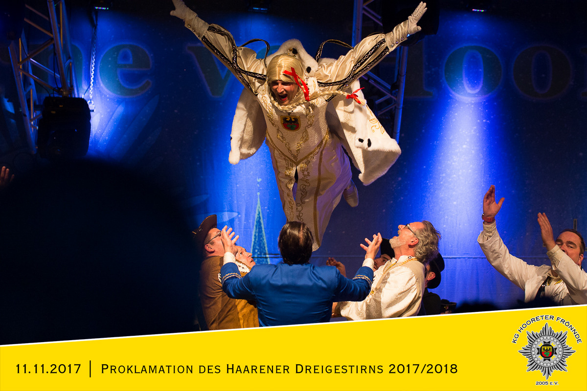 28.11.17 - Knapp 2 Wochen ist jetzt die Proklamation des Haarener Dreigestirns her und wir haben sehr viel positive Resonanz erhalten. Der Sternenhimmel über Hoore hat wahrlich angefangen zu leuihten! Wir sind überwältigt von den vielen positiven Reaktionen mit denen wir nicht gerechnet hatten und möchten uns hiermit bei allen bedanken, die dazu beigetragen haben, dass dieser Abend für uns und offensichtlich auch einen Großteil des Publikums unvergesslich geworden ist. Nun freuen wir uns auf die kommende Weihnachtszeit und eine grandiose Session mit einem stimmungsvollen Dreigestirn und einer tollen Truppe im Anhang.